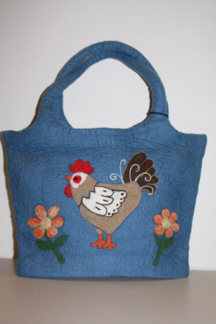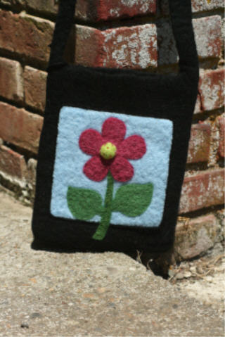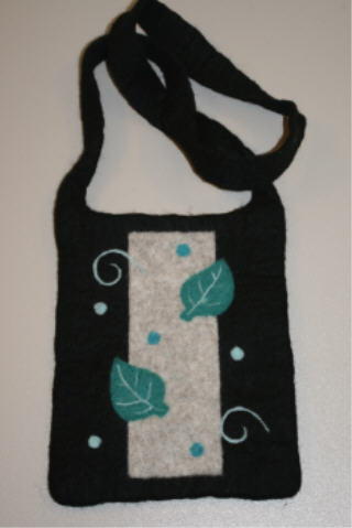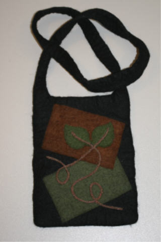 I can only take credit for the needle felted design on the front, the purse itself is 100% wool and wet felted. The quality is very high and I have been carrying mine around for months now and the strap hasn’t stretched at all. Stretching is a common problem in felted items that aren’t felted enough.