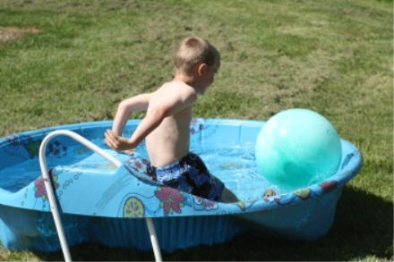 Third – continue on with chores until you start sweating again. Head back to the kiddie pool and take another dip. Continue until you are done.