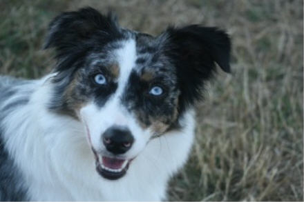 This is Teia – a blue merle australian shepherd – owned by Tammy. She is just over a year old and is learning how to be a sheep dog.
