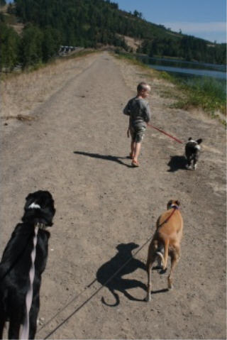 We usually go for a bike ride or a walk at the park several times during the week, but today we went to the dam. It isn’t a very long walk, so we took all the dogs. We usually take Kate and Paisley, but Darby is limited on how far he can walk so he stays home most of the time. He is a little heavy to be carrying back to the car – been there done that 🙂