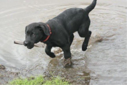 and is quite the retriever. She blasts into the water and dives for the object if it sinks.