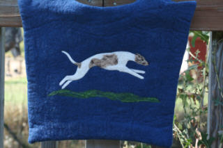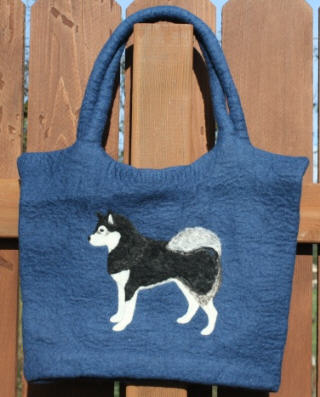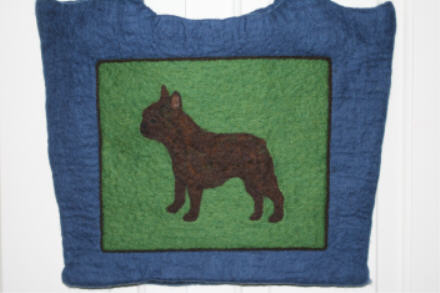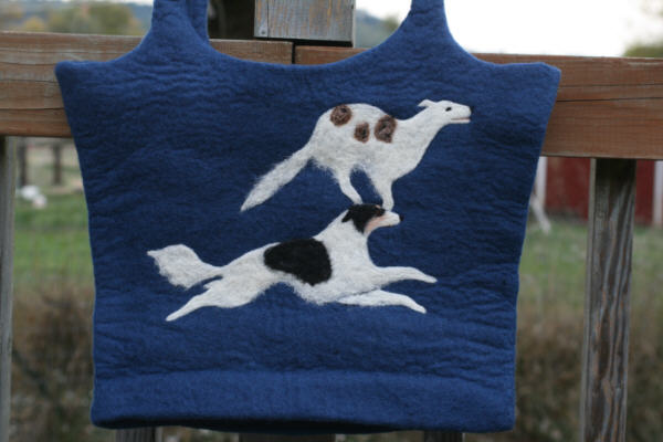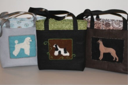 I just finished these and they have been added to my Etsy shop. A poodle, cocker spaniel, and great dane felted onto my handmade felt and fabric totes.