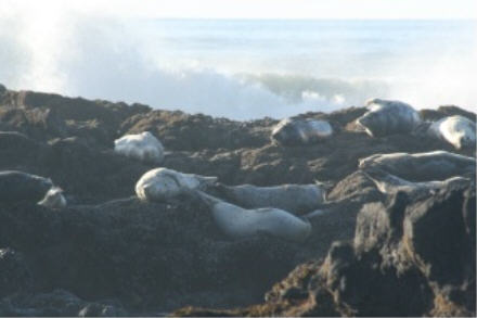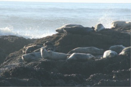 Mostly Harbor Seals, but there were a few Sea Lions there as well. They were all sunning themselves on the big rocks.