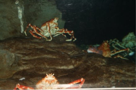 REALLY big crabs. These are Japanese Spider crabs and are the biggest in the world. Their leg span can be up to 13 feet!