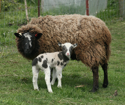 This is what a typical Jacob cross looks like. Mostly black with splashes of white, usually on the head.