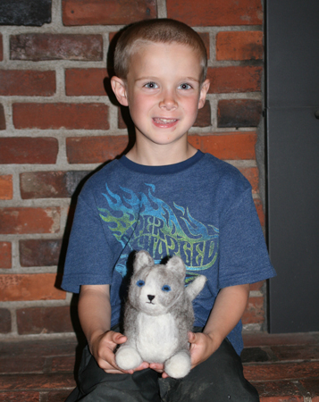 He did such a great job and is very proud of his cat. This is going to be his Black Sheep Gathering spinner’s lead entry and he can’t wait to carry Whiskers around while he is walking his lamb Precious 🙂 Whiskers is made completely out of our Jacob wool.