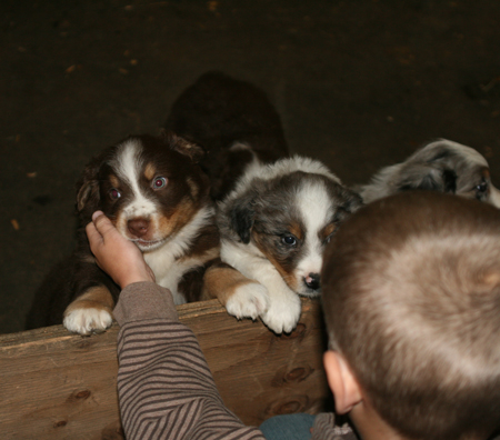 Great post! I love when puppies are in that rolly-polly stage. 🙂 Such pretty colors too… I believe bringing home an Aussie would fly over like a lead balloon for Tony. 😉