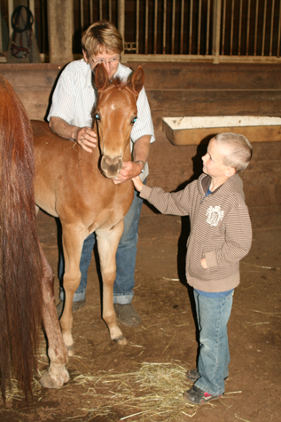 The puppies started to nod off and we made our way to the barn where the colt was.