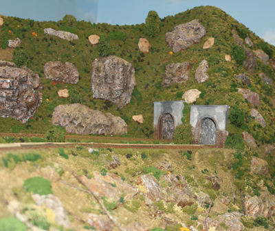 The boys loved watching the trains go around and switch track, but I really liked all of the background details. These tunnels through the mountain were my favorite.