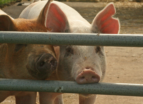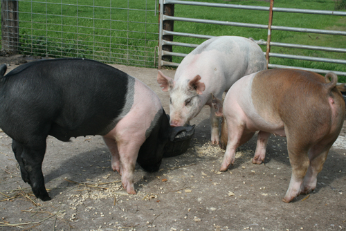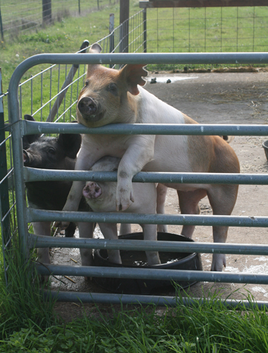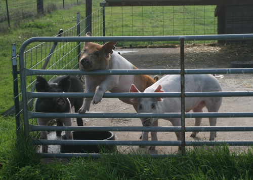 They start grunting and squealing as soon as I turn the corner and they see me.