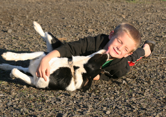1. Okay..stop with the cute border collie/growing up boy shots! Your killing my hormones!!!!! I LOVE the not afraid to get dirty! Love how Miss R is okay with being upside down with Mr. T……no fear or submission….just two peas. Glad they have each other!