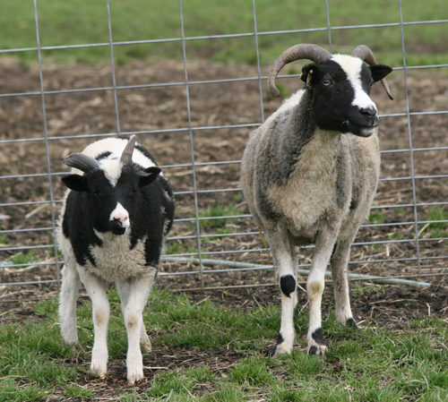 Holly had a rough go shortly after lambing. She presented with symptoms of polio. After consulting with my vet, we believe she had low calcium levels, which caused her to have polio. He explained that polio was usually a secondary illness to another problem. Polio is the easy to say term for Polioencephalomalacia. Polio is caused by an inadequacy or depletion of thiamine. The symptoms are neurological abnormalities with a sudden onset. These may include incoordination such as a staggered walk, bumping into objects, and some will wander randomly, often in circles. Sudden vision loss may also happen. Unfortunately, this is what happened to Holly. In the morning she seemed fine, but by afternoon she had obvious problems. If left untreated, the animal can go down very quickly. The vet had me give her Thiamine twice a day along with oral calcium. She seemed better after a week of treatment, but her vision did not return. I have kept her in the barn in a pen that she is familiar with along with her lambs, but I hate keeping the sheep locked inside – nothing is better than fresh air and green grass! I experimented with turning them out and watching her to make sure she could navigate through the gates and pastures. She had a hard time for the first couple of days, but then I noticed something amazing. Her ram lamb never left her side and would call to her when she was lost!