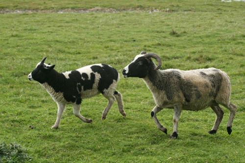 I have been watching the relationship with fascination and I thought it was maybe just a fluke, until yesterday evening. I went out to bring the sheep in from the pasture and Holly got left behind the big group. Ector got caught up in the moment and ran to the barn with everyone else, I thought I was going to have to help Holly in, but then Ector stopped. He turned around and called and called for her. She could hear him, but was too far away to figure out what direction he was calling from. He tried one more time, then he ran over to her and started walking with her to the barn.