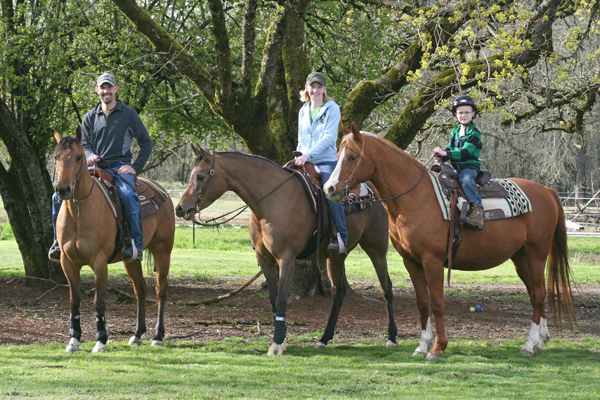 Awhile ago we were invited to come ride horses at a friend’s house and it finally worked for us to go this weekend. Our son was very excited, but while we were driving to their house he was really quiet. Being the chatterbox that he is I thought something might be wrong, so I asked him if he was nervous about riding a horse. He said ‘yes’. He said that he would feel much better if his dad rode a horse too. I don’t know if my husband was going to riding a horse or not, but this sealed the deal. I’m glad it did, because it was fun for all of us to ride. Plus it gave us the opportunity to have a really nice family photo taken…