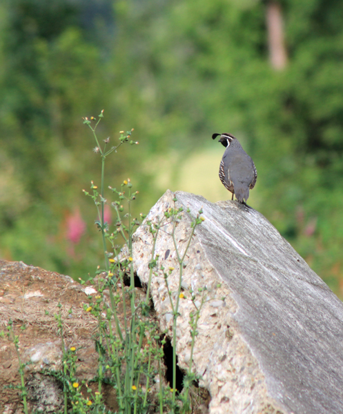 It isn’t very noticeable, but you can feel a little bit of Fall in the air. There is a crispness in the morning and the shadows are getting longer. With the small change, the quail have returned! I have missed them while they were gone and am happy to welcome them back. I love listening to them talk to each other and call out their warnings.