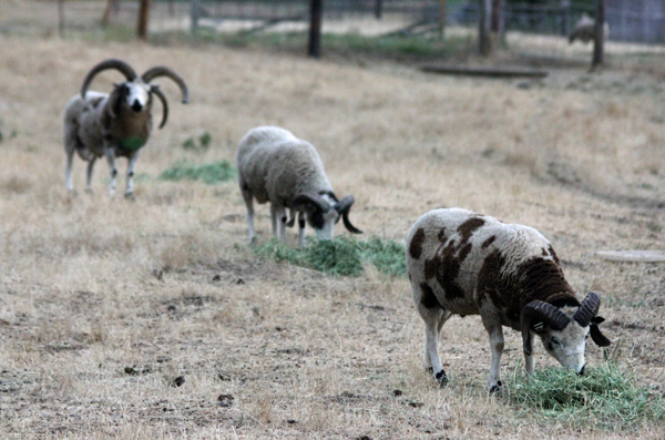 In my last post, the boys were spending a little time in the small pen to become acquainted again. The next day we turned them out in the pasture with some alfalfa and crossed our fingers that there wouldn’t be much fighting.