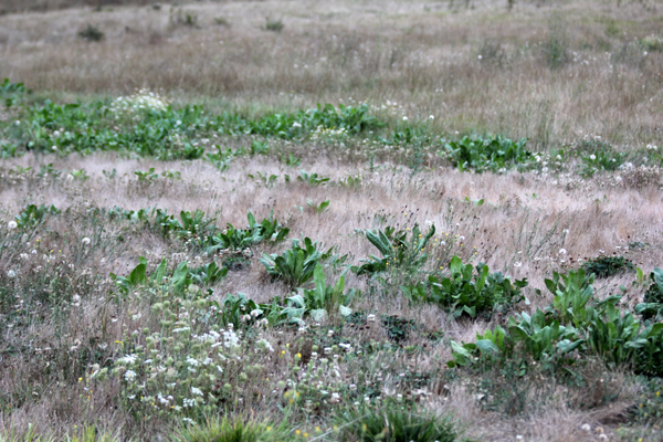 The pastures have been awfully brown, except for the chicory we planted. It started growing and turning green with just the little bit of dew we were getting towards the end of summer. The chicory is new for us and we are hoping it can help choke out the foxtail.