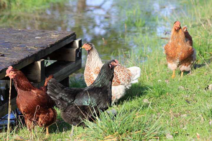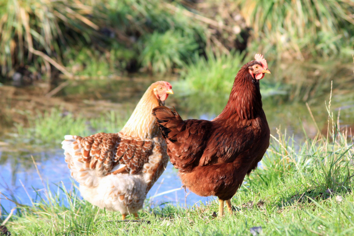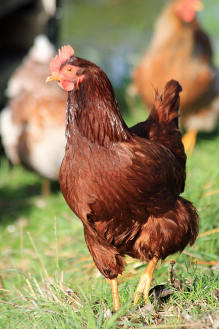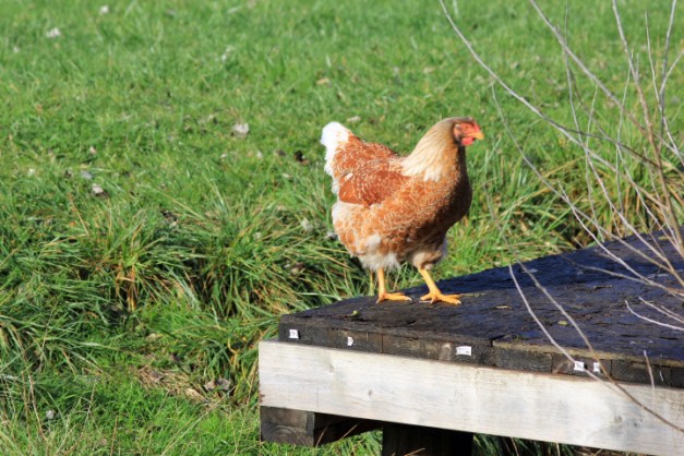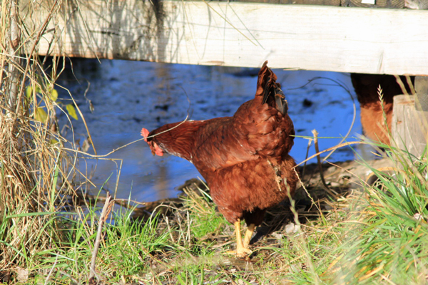 They are still here 🙂 They are in some of the pictures, but aren’t the main focal attention. The chicken on the bridge is a BLRW, but her coloring isn’t very good. You can definitely see a difference in the penciling between the hatchery chickens and the small farm chickens. I’ll post some more pictures of them.