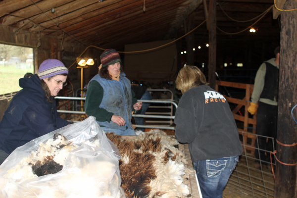 That is how I usually do it Linda 😉 Thanks! You know they are very good friends when they are willing to come hang out in the cold for the majority of the day digging through dirty wool! I really do like shearing before hand if it is possible. The pregnancy blood testing is done through http://www.biotracking.com It is $6.50/sample. The tests are done on Wednesdays and results are available Friday. Very reasonable and a great way to decide if you are going to keep a ewe through the winter. Especially one that hasn’t lambed for the last two years 🙂 Thank you, I am hoping to coat the lambs soon to be yearlings to keep their fleeces clean.
