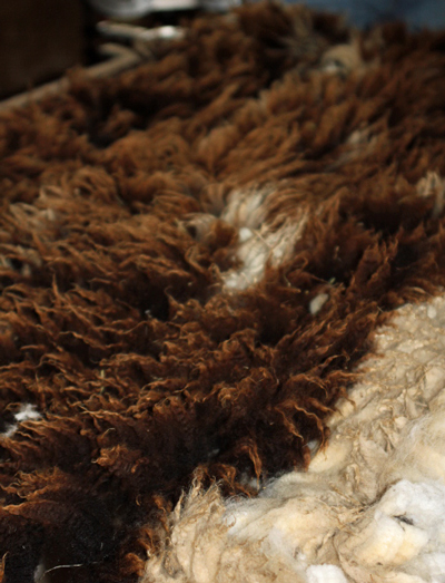 Send them here, too 🙂 I start out by keeping up with the shearer as far as quick skirting, but fall behind at about the tenth fleece.