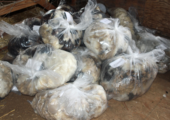 Here is about 1/4 of the fleeces. They are now piled in my shop and I desperately need some shelves in there to organize them!