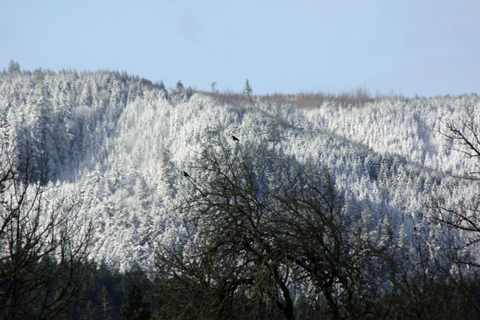 They were snuggled up around the tree and waiting for breakfast when I went out.