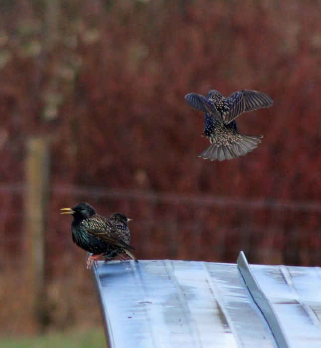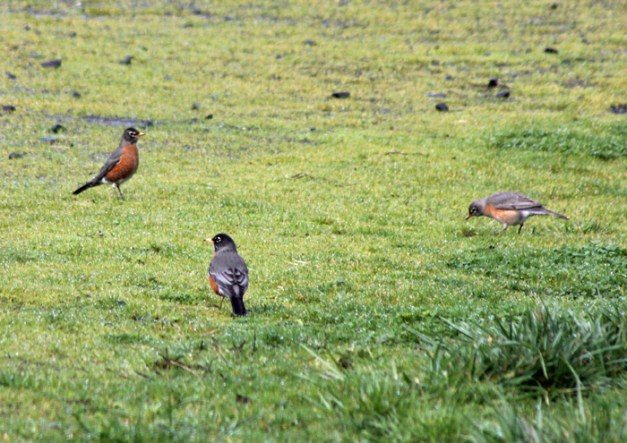 Unlike the robins who were out working for their food, these guys were looking for a free meal from the chickens, little stinkers.