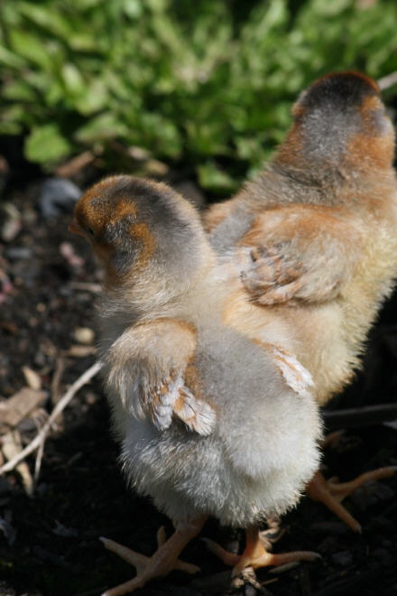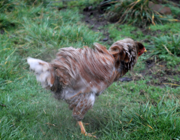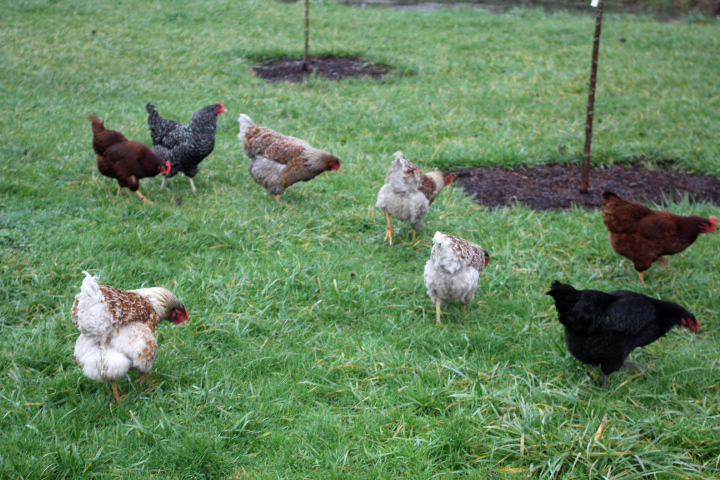 I think the chickens are starting to morph into ducks…they don’t even seek shelter from the rain anymore and I found them in the creek eating tadpoles and little snails. True northwest chickens!