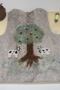 Here is a picture of our vendor booth, we had – felted vests and wall hangings, jacob fleeces, roving, yarn, horn buttons, and goats milk soap that my sister makes. It smells so good!!!