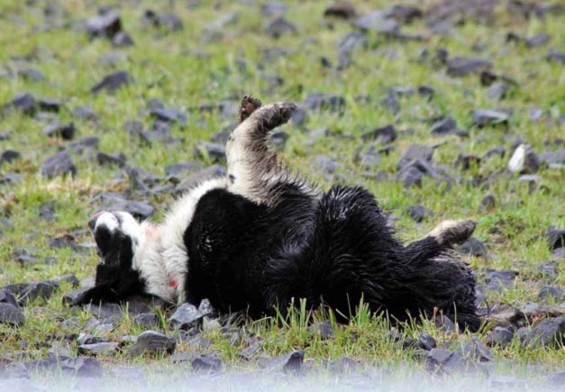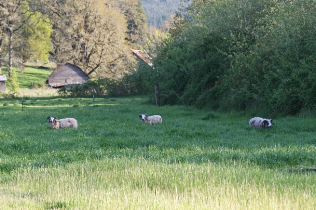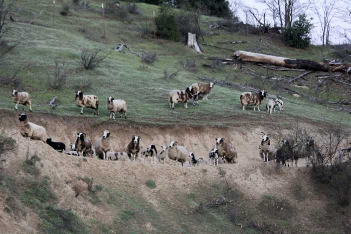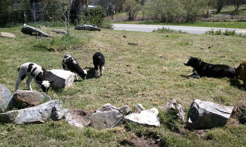 The sheep thought they had outsmarted her, but after convincing her that the sheep were up there (she couldn’t see them) she went up and around and brought them back to the barn for us.
