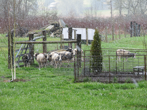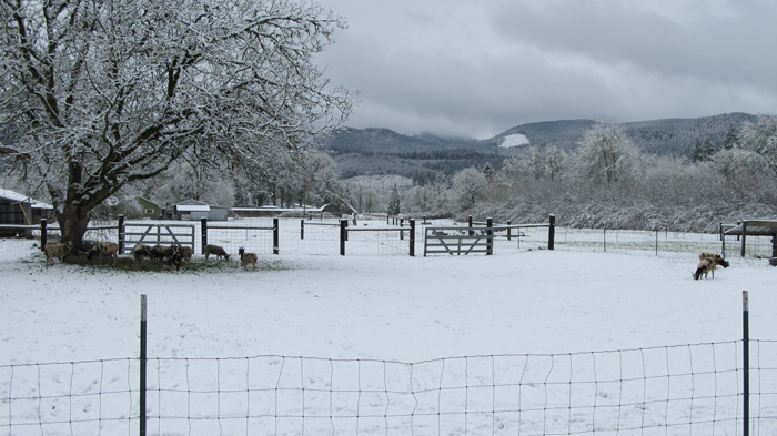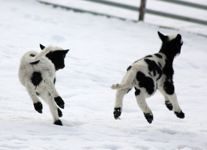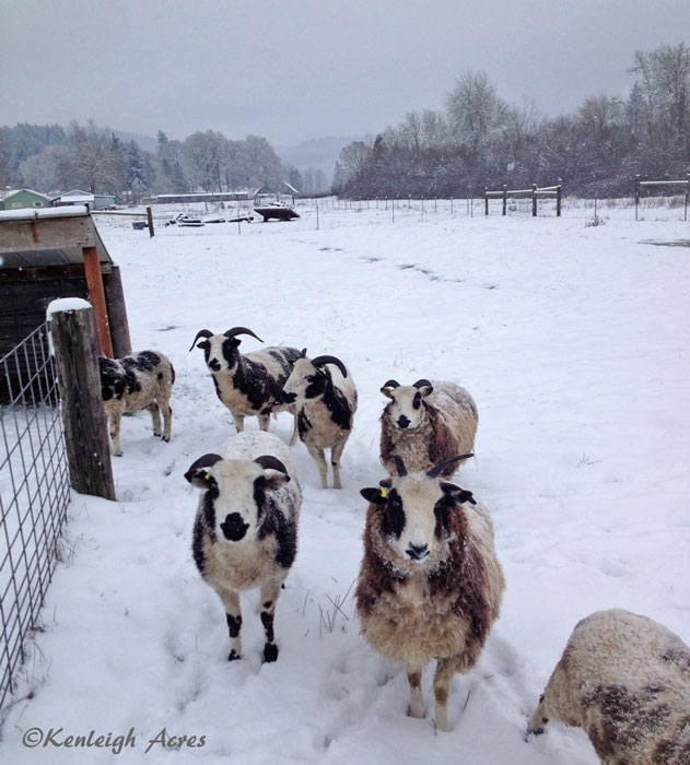 The yearling girls were recently moved outside because of their behavior in the barn with the new babies. They thought it was fun to have someone smaller to pick on. I bet they are rethinking their actions now! They have a shelter, but have chosen to stay out in the snow…I think they are trying to make me feel bad 😉