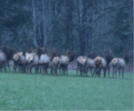 My sister and I had signed up for a vendor booth and left early in the morning. The following picture is pretty blurry, but it was really dark out! A herd of about 30 elk were on the side of the road on the way up.