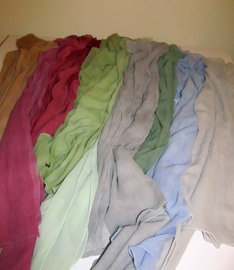 Dyed Silk Scarves – I have been dyeing these silk chiffon scarves that will then be nuno felted.