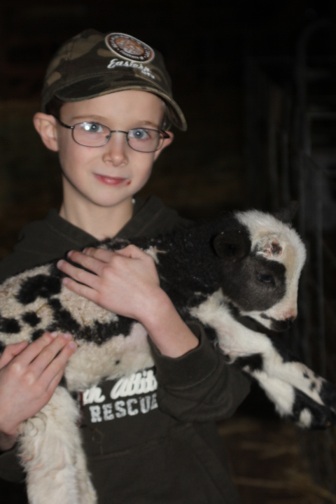 Next up was one of my son’s ewes, Echo. She had a pair of ram lambs. He named this guy Explorer because he was a real go getter and was exploring the whole barn while his mom was cleaning up his brother. My son had to keep picking him up and putting him back with mom.