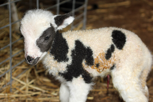 Mollala, another first time momma, surprised and mystified us with this lilac ram lamb. Lilac is a recessive color gene in the Jacob breed and I really didn’t think she was a carrier. She was bred to Reno, a known lilac carrier. I guess she showed us 🙂