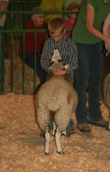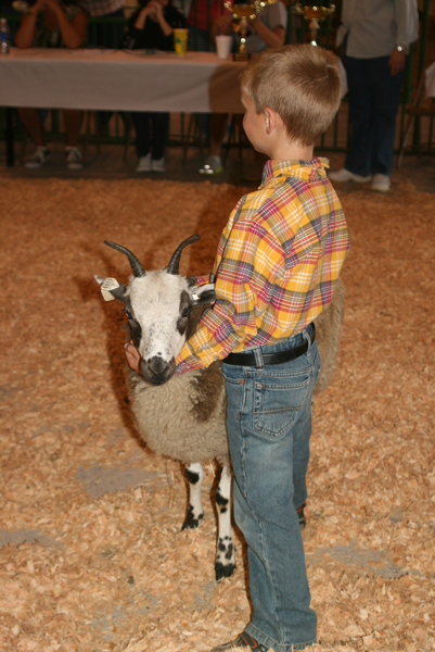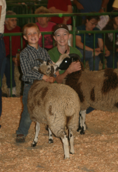 In the Jacob classes, we had help from both of my sisters. He was very happy when his lamb, Precious, was awarded Reserve Champion.